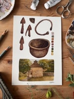 In my Sketchbook Series I am making prints and cards of the pages from my sketchbook, this page is my observations from my visit to Avebury Museum.