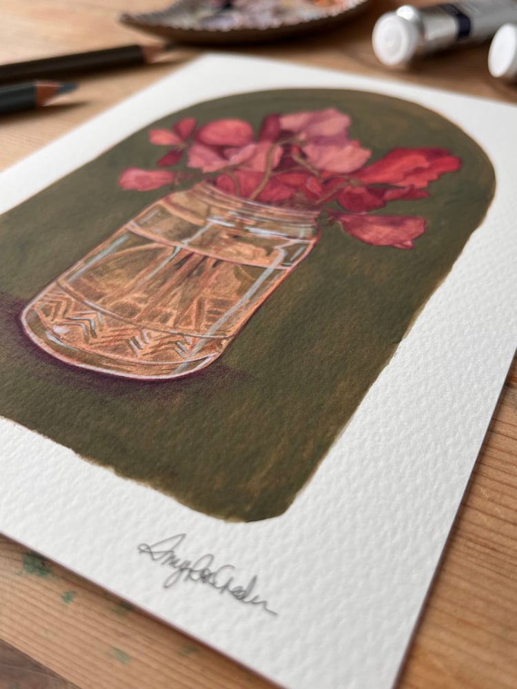 In my Sketchbook Series I am making prints and cards of the pages from my sketchbook, these were sweet peas in a jar from my garden.